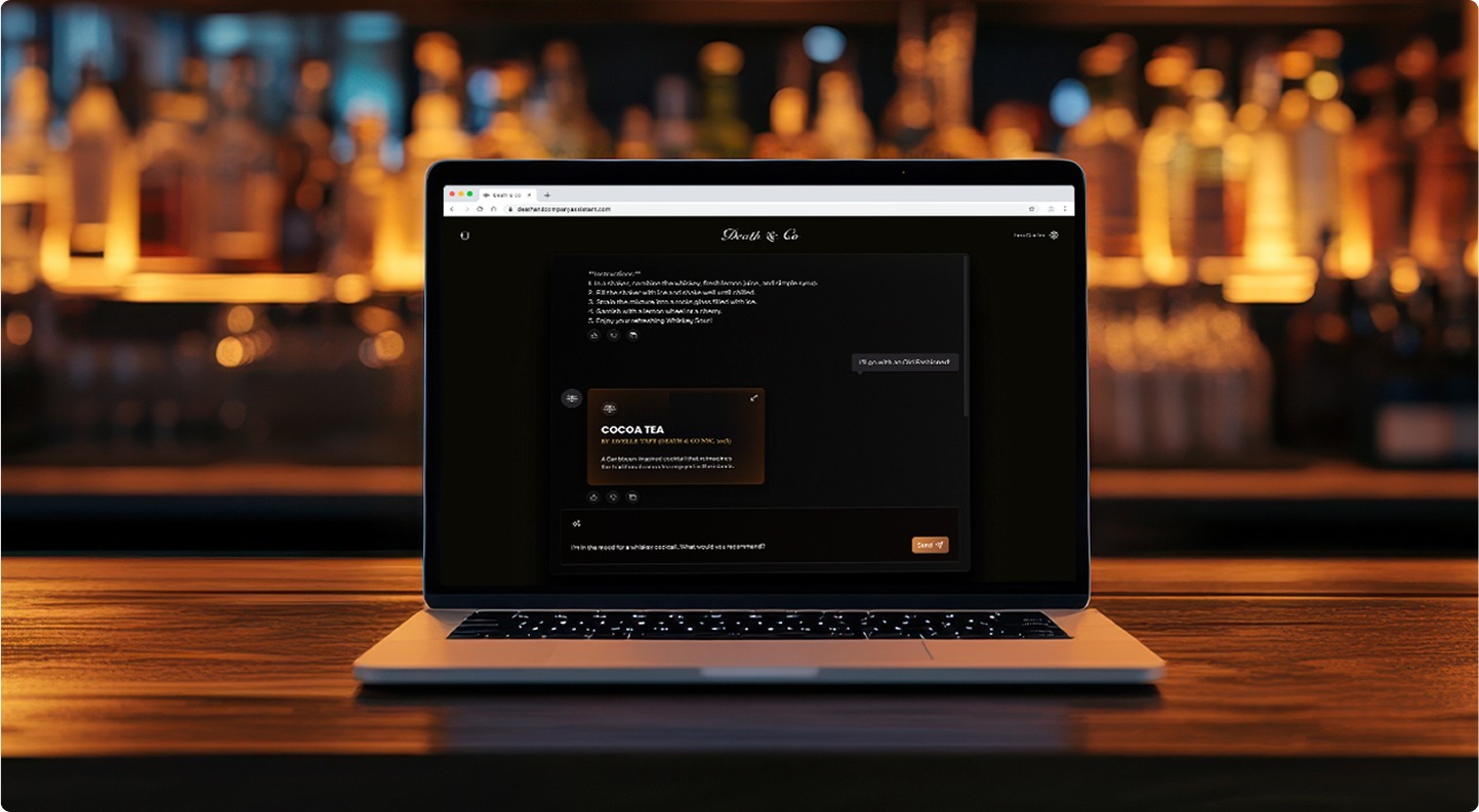 • Hospitality & Brand Voice (Death & Co): For the iconic cocktail brand, Valere built an AI bartender chatbot using a RAG (Retrieval-Augmented Generation) framework. The AI achieved a 90% accuracy rate in providing recipes and recommendations while successfully mimicking the brand’s specific professional bartender “voice”. For more information on this project, we encourage you to check out their case study here.